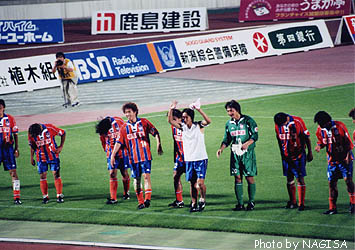 1点リードで一人少ない。木澤の足の調子もよくなさそう。後半はいったいどうなるんだ・・・。ハーフタイムに他会場の経過が流れる。仙台が大分を1−0でリード。ざわめきが起きる。そして、ドキドキのセカンドハーフ。