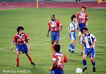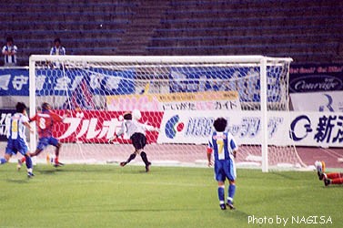 ![]() 前半20分過ぎ、寺川が右サイドの木澤にロングパス。 木澤のセンタリングを慎吾がヘッドで決める! が、慎吾の足しか写ってない(笑)。詰めているのはナシメント。 | ||