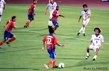 ![]() 堂森の左からのミドルシュートなど、惜しいシュートが いくつか・・・。水戸もバーを叩くシュート!あー、冷や汗。 結局120分闘っての引き分け。 |