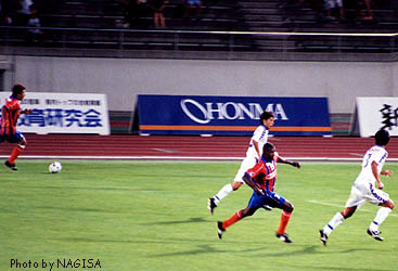 ![]() 80分過ぎにFWで投入された柴。 はげしい攻防。 |