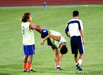 アップの様子を見ていていつも思うのだが、カンさんはとっても身体が柔らかい。練習中も念入りにストレッチをしているし、さすがだなあと思う。こういうしなやかな肉体があってこそ、技術やアイディアも活きるというものだ。