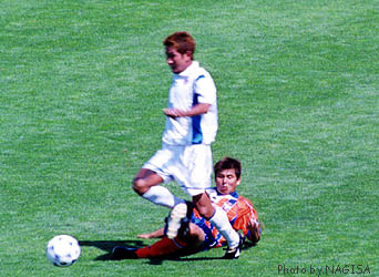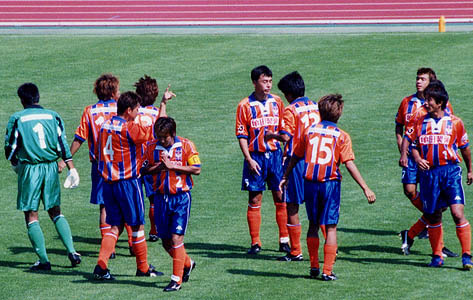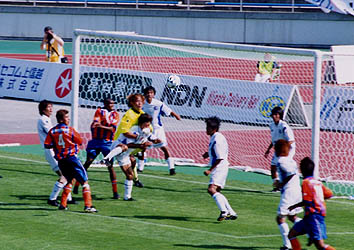 前半37分。慎吾のCKを必死にクリアする甲府GK。