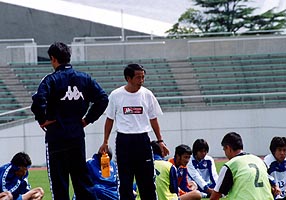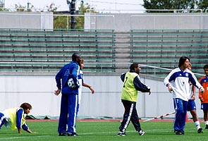 ![]() 選手たちが市陸に集まりはじめる。 勲ちゃん、寝ぐせなの? |