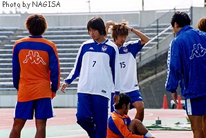 ![]() FW永井(敬称略)と、守る深澤。 ゴール前にボールを運びながらシュートをしない 永井に、ギャラリーから「シュート打て!」 |