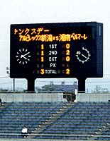 終盤、2−2の同点に追いつかれてから、中野に替えてナシメント投入。秋葉をセンターバックに持ってきて3バックに。寺川に替えて式田を入れ、これで交替枠を使い切る。ところが、後半終了間際、吉原が膝を痛めほとんど歩けない状態。延長戦はまさに「おお秋葉が命!」。