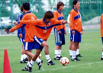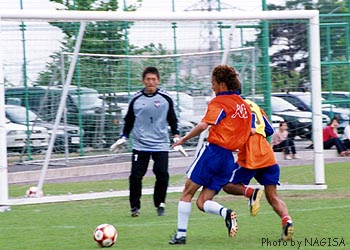 ![]() シュートをねらうウジ。GKは木寺だ! |