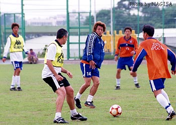 ![]() ミニゲーム。手前のビブスはジェルソンGKコーチ。 確か、神田より若い、はず・・・。 |