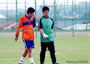 ![]() お疲れさま〜〜。練習を終えて戻ってくるアラケンとのざりん。 のざりんの無精ヒゲ(?)は、賛否両論らしい・・・。 |