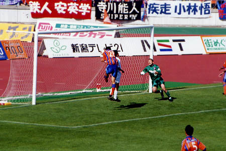 船越の豪快なヘディングシュート!