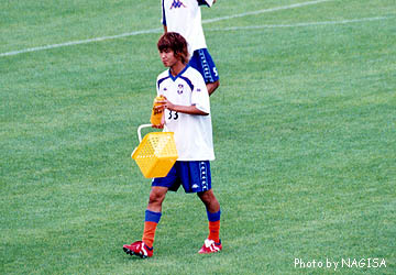 ![]() アップを終えて選手が控え室に戻る。 若いモンは買い物カゴ(笑)持ってお片づけ。 |