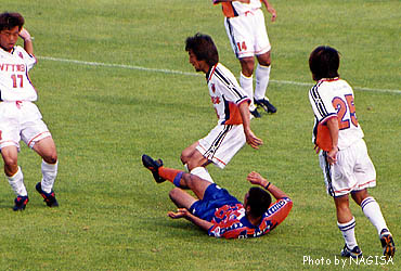 ![]() ガチンコサッカー クロスを防ぐ山形 |
