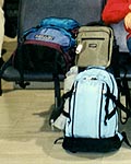 | 9/14 | スカイライナーで成田へ。空港駅の改札を出たところで、さっそくパスポートチェックあり。怪しい人物を空港内に入れない、ってことなんだろうか。とにかくNYのテロから3日。アメリカに行く便は全面運休だし、しばらくは厳しい警戒が続くはず。 ←持っていく荷物はこれで全部。椅子に載ってるリュックとバッグは夫の荷物。下に置いてある水色のリュック@ユニクロが渚の荷物。10日の旅行でこれじゃ、いくらなんでも少なすぎか(爆) 空路ミラノへ。13:30発。座席は2階。機体もほとんど揺れず、快適な空の旅。座席にある個人用スクリーンに眼下の景色が映し出されて、すごく楽しかった。「飛行機に乗って酔わなかったことはない」のがウリ(笑)の渚だったけど、今回の旅では全く大丈夫だった。
