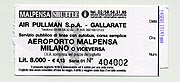 ミラノには現地時間で夕方6時過ぎに到着。寒いし雨も降ってる。荷物は機内持ち込みのみなので、入国審査が終わってすぐ市内に向かうシャトルバスに乗る。運賃1人8000リラ(480円くらい)。バスのチケットを買うのに、初めてリラ札を使ったわけだけど、10万リラと1万リラの区別がつかない。「Two tickets, please」と言って、10万札リラのつもりで1万リラを出してじっとおつりを待つ私(爆)。「Eight thousands, each!」と催促されて、慌てて間違いに気づいてもう1万リラ出す。「0」の数が多すぎて、にわかには見分けがつかないんだよね(苦笑)。前途多難。 シャトルバスで1時間ちょっとでミラノ中央駅に到着。ここからタクシーでホテルに向かうことにする。んが!タクシー乗り場に、なかなかタクシーが来ない。なしてー。 15分以上も待って、ようやく乗車。紙に書いたホテル名と住所を見せ、「ホテル×××、ペル・ファボーレ!」と一言。ホテルの前の通りが一方通行だったんで、ちょっと回り道っぽかったけど、8時半過ぎにはホテルに到着。ふぅーーー。 時差の関係で、いつもより7時間長い1日を終える。 | ||||