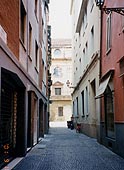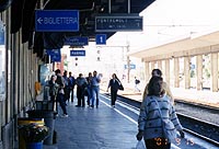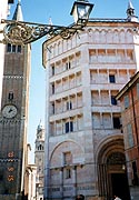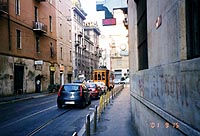 ![]() ミラノの朝 ホテル前の道路 ![]() 自動券売機で買ったパルマ行切符 2人分で26,400リラ(1,600円ほど) ![]() パルマの駅はこじんまり ![]() バラ色の大理石が美しい洗礼堂 ![]() parmalat社の寄付でドゥオモの 改修が行われた、みたいな・・・ ![]() 石畳の続くパルマの裏通り | 9/15 | ホテルの前をトラムが走っている。結構朝早くから、「ごとーんごとーん」っていうトラムの音が聞こえていた。 パンにジュースにコーヒーというコンチネンタルスタイルの朝食を済ませ、ちょっくら朝の散歩。街はまだ静かで、ひんやりした石造りの建物に朝日があたっている。どの建物も大きい。もう建って300年にもなるかと思うようなツタに覆われた建物がアパートで、ちゃんと表札と呼び鈴があって、人間が今でも暮らしている・・・。そんなことにちょっと感動。 ホテルをチェックアウト後、今度は地下鉄で駅に向かう。地下鉄の自動販売機で切符を買おうとしたが、古い機械で、500リラのコインしかうけつけないらしい。近くの売店で、ダービッツが表紙の「ガゼッタ・デル・スポルト」(イタリアのスポーツ紙)を買い、お釣りにコインを混ぜてもらう。途中乗り換えを含め、4駅ほどでミラノ中央駅へ。 今度は、パルマまでの列車の切符を、やはり自動販売機で購入してみる。 駅構内の1階には、数台の切符自動販売機が設置してある。タッチパネル方式の5ヵ国語仕様で、画面のユニオンジャックのマークに触れると、英語表示になる。指示通りに、「切符の購入」→「乗車日」→「目的地」→「乗車する時間帯」を画面でタッチしていくと、候補となる列車のリストが表示される。乗りたい列車を選んで、1等か2等か、指定席を予約するか、禁煙か喫煙かなどを選択すると、最後に切符購入の画面になり、クレジットカード(現金支払も可)を挿入すればOK!切符が印刷されて出てくる。んまー、こりゃ便利!! イタリアの「国鉄」(!)の窓口は、なんだかいつでも混んでいて、そっけなくて、英語もあんまり通じないし・・・(ブツブツ)。みんなも列に並んでるより、この機械で買えばいいのに、なぜか窓口は混んでいて機械は空いている。うーん。翌日分までの切符しか買えないせいなのかな。まあ、いろいろ事情があるのだろうが。