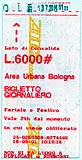 ![]() ボローニャのバス1日券 ![]() マッジョーレ広場 ![]() スタジアムバックスタンド側の道路に 面したポルティコ(柱廊) ![]() チケット半券 ![]() 裏に日時・席番号・価格 などが印刷されている ![]() ポケッタブル・レインコート チープなイラストがグー(笑) | 9/16 | 今日はいよいよボローニャでセリエA観戦の日!ということで、早めにホテルをチェックアウトして駅に向かう。ピロッタ宮殿前の広場には、運動着姿の人々が何やら受付をしてゼッケンを付けている。市民マラソンみたいなものがあるようだった。 09:04発のPESCOLA行きという2等のみのIRで、ボローニャに向かう。二人で17,200リラ(約1,000円)。
