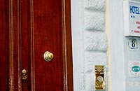 ![]() フィレンツェで泊まったホテルのドア ピカピカの四角い真鍮部分にある 呼び鈴を押すと、ドアの鍵が開く |